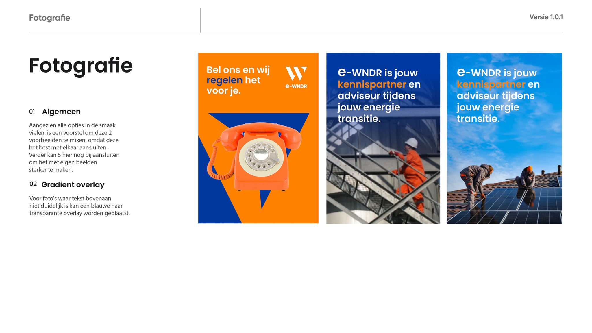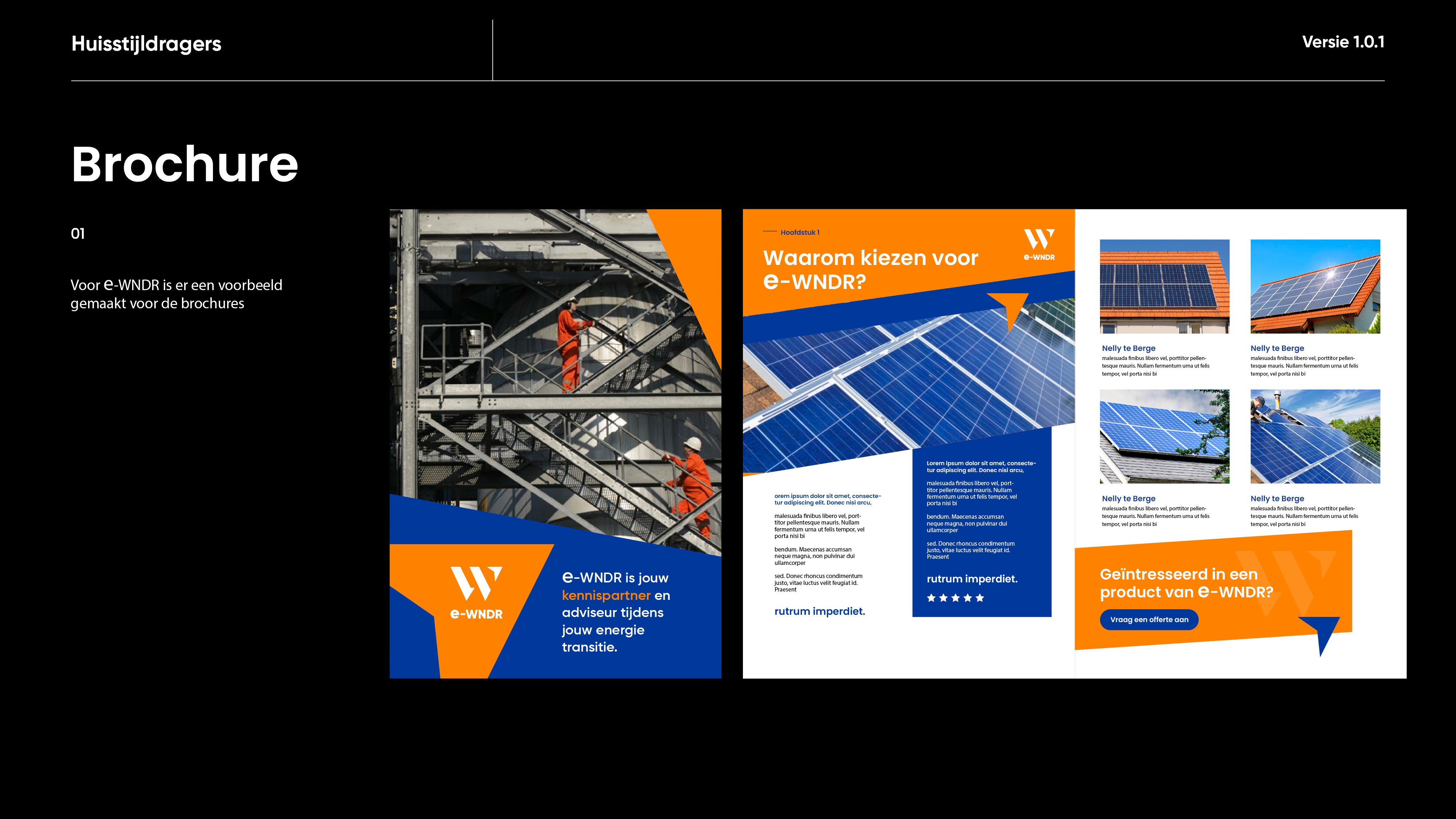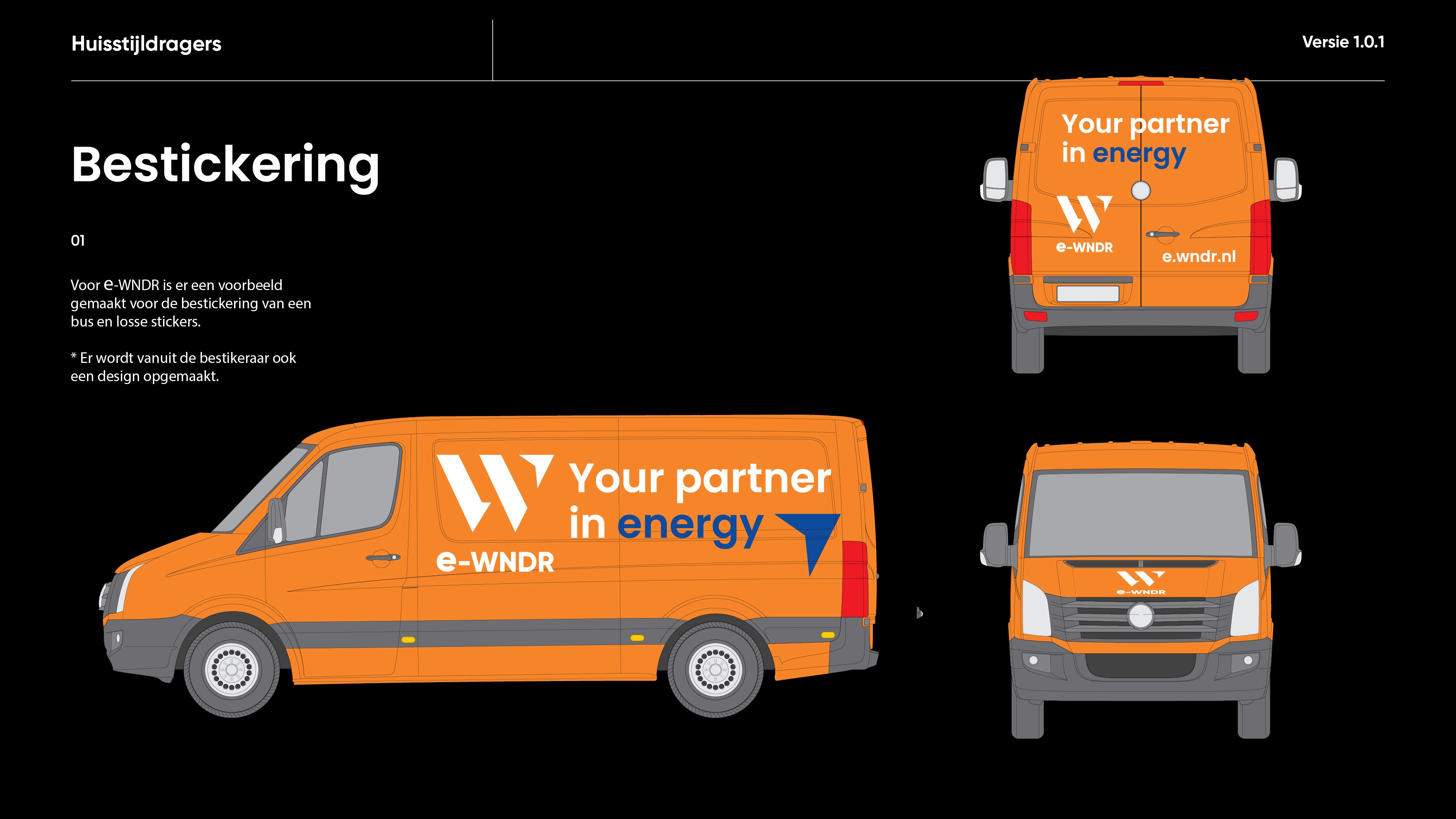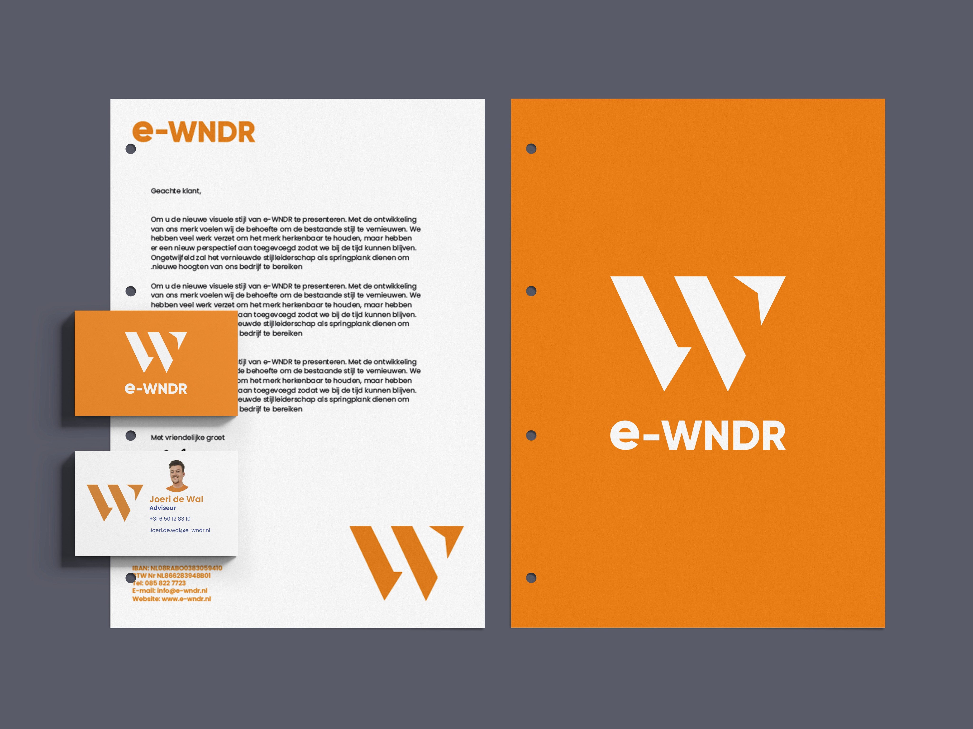 About I had the opportunity to create the complete visual identity from scratch for e-wndr, an innovative energy company. Using a logo concept drawn by the client as a basis, it was digitized and, from it, I created a brand identity that shows the way this company works for sustainable energy with a forward approach.
