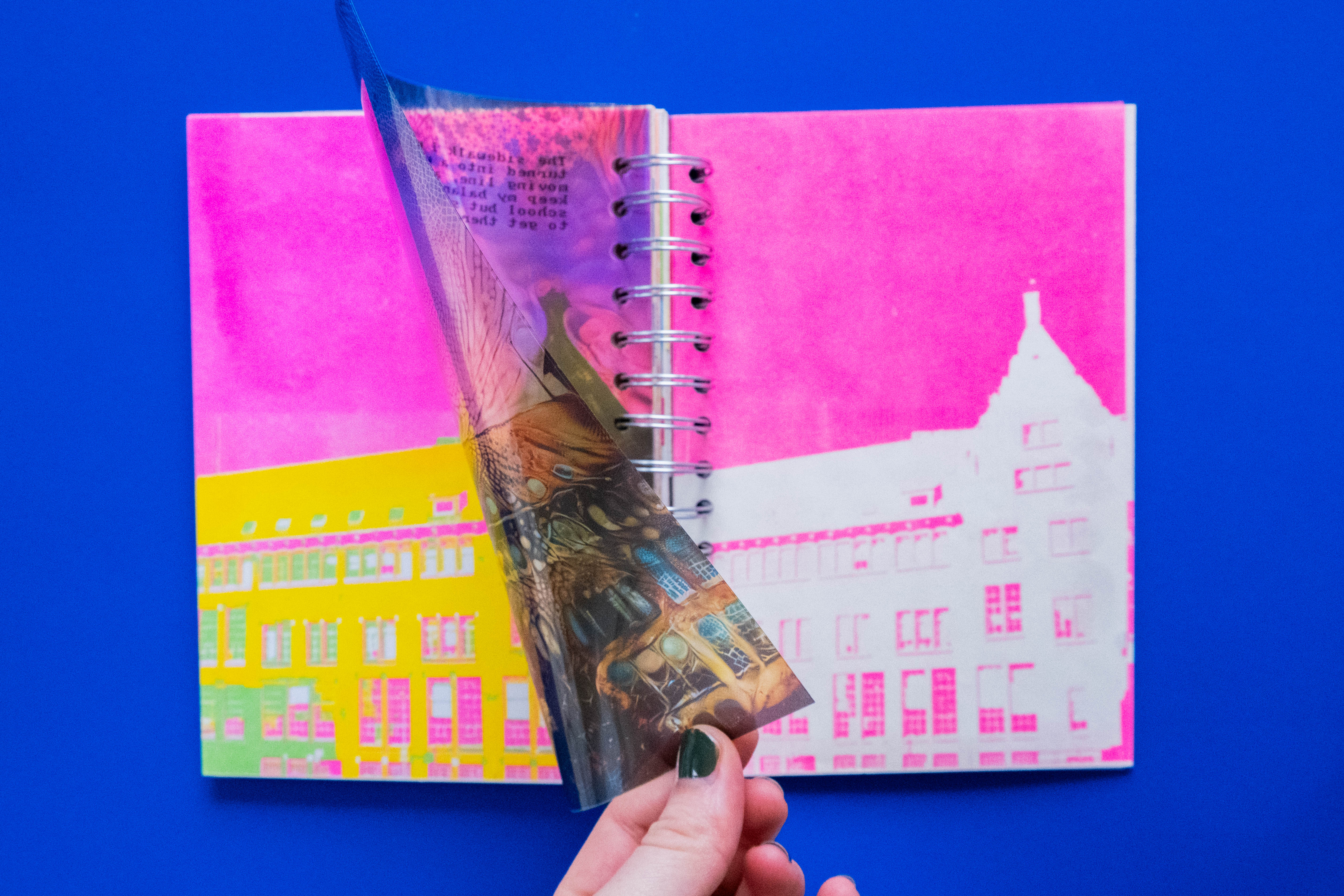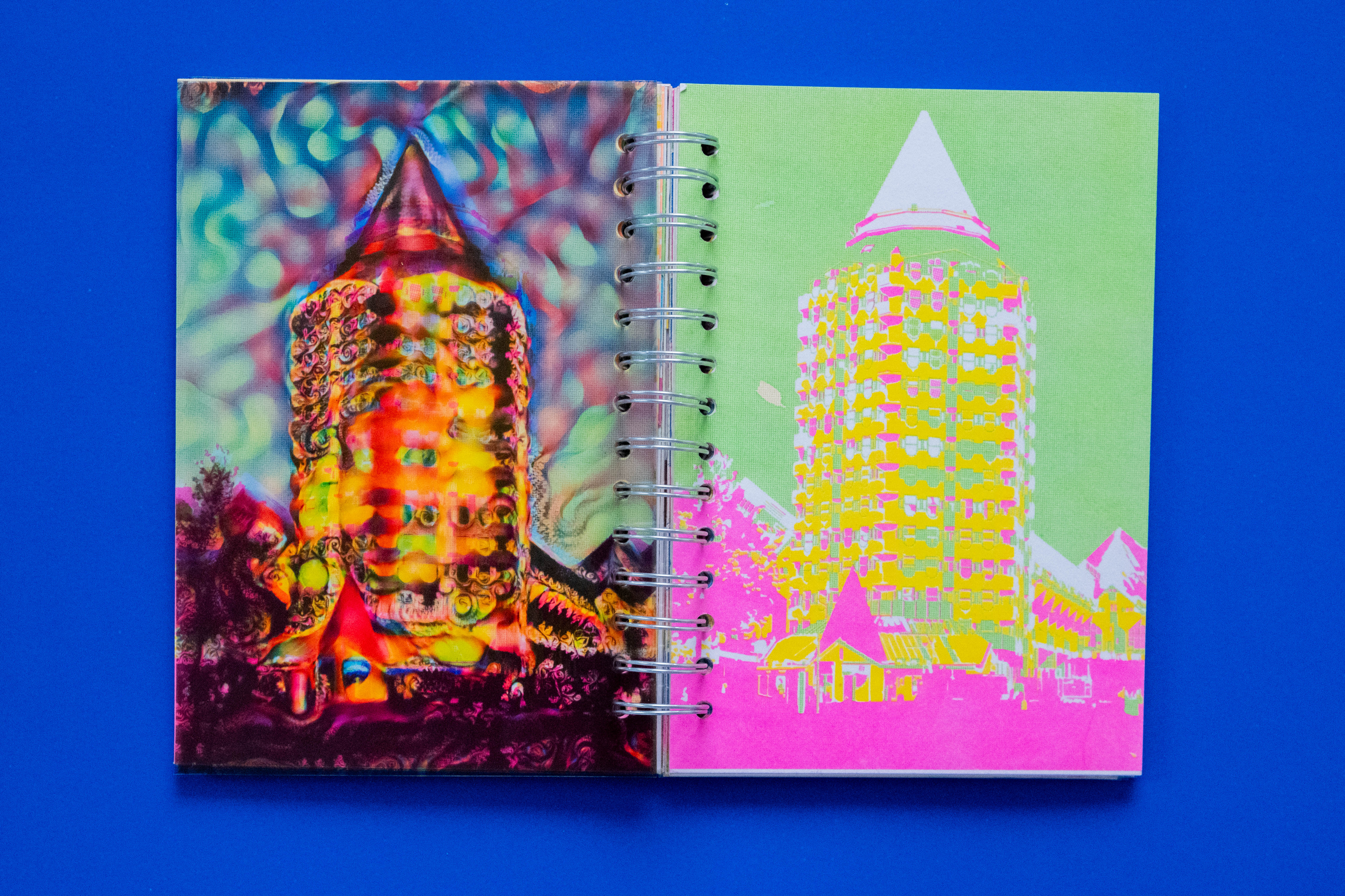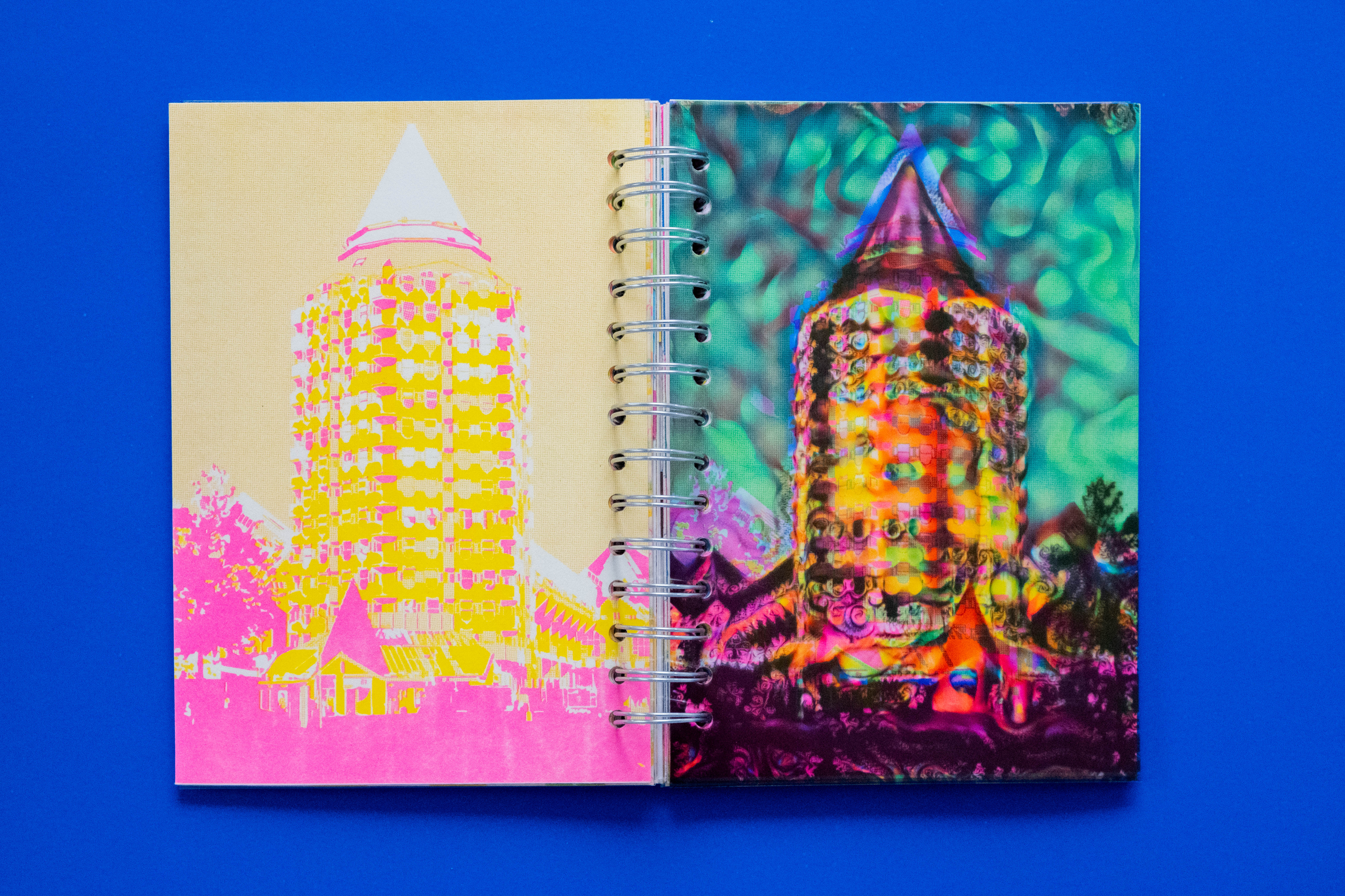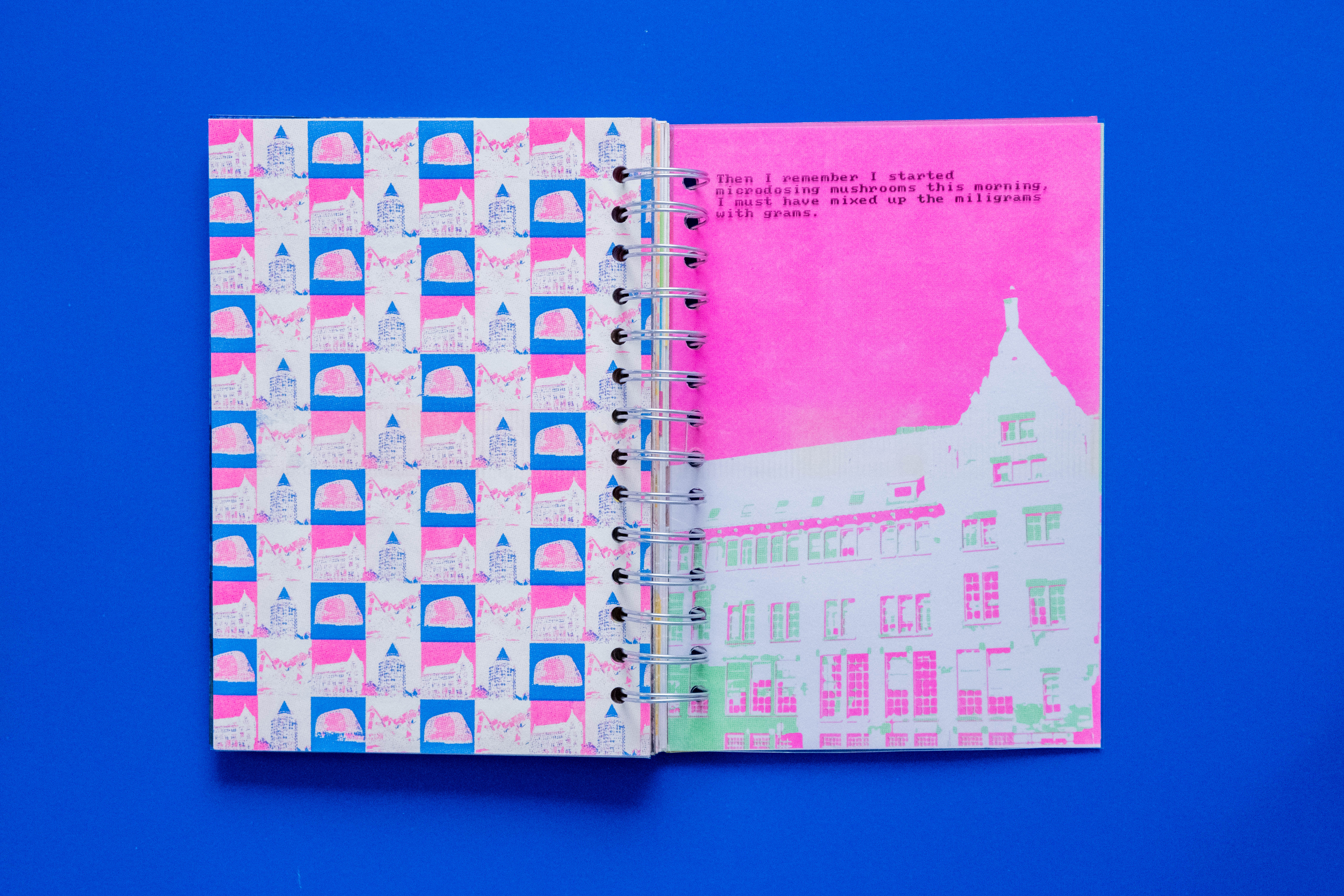 I experimented with analog techniques, using Risograph printing to create visuals with a unique, textural feel, adding dimension and an extra layer of psychedelia to the narrative. The final book blended storytelling and Risograph printing into one visually striking piece, capturing the surreal and disorienting essence of the journey.